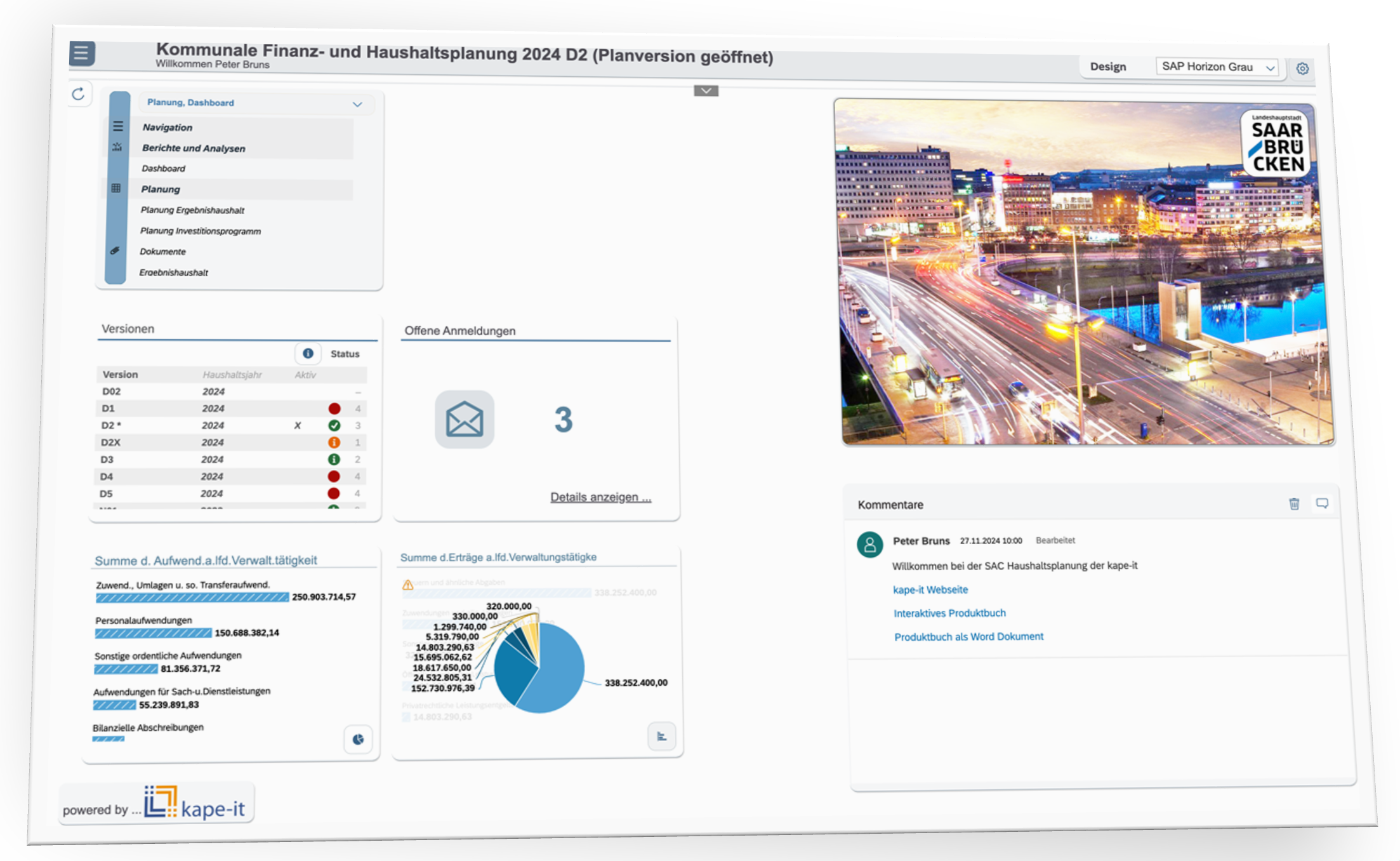 Gemeinsam mit der Landeshauptstadt Saarbrücken haben wir eine optimale Finanz- und Haushaltsplanung für Städte und Kommunen entwickelt.